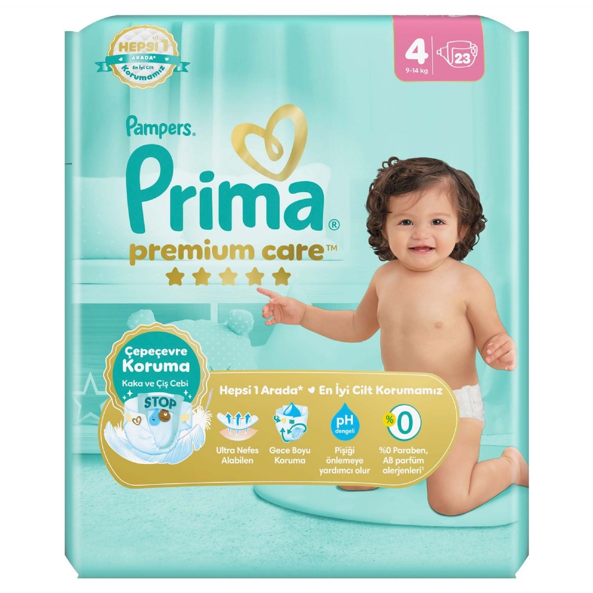 Prima Premium Care, içeride be dışarıda ipeksi yumuÅŸaklık sunan 5 yıldızlı cilt koruması ile en iyi bebek bezimizdir. Emici Kanallara sahip 12 saate kadar kuruluk saÄŸlayan ilk ve tek bebek bezidir.